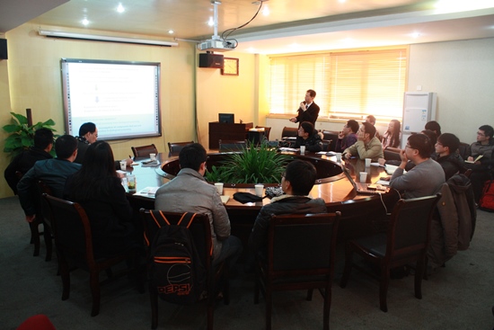 2014年12月23日-29日,日本富山县立大学Prof. Yasuhiro Igarashi来新葡的京集团88142011协同创新中心和省重点实验室访问,并在“三实讲坛”作了关于“Microorganism Synthesize Complex Natural Products”的学术讲座,相关教师和全体硕士研究生参加了学术讲座,副院长杨瑞芹教授主持会议。