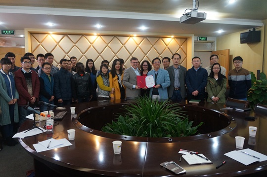 Thomas Efferth教授被聘为新葡的京集团8814/轻工学院和省重点实验室客座教授,毛建卫教授为Thomas Efferth教授颁发了客座教授证书。
