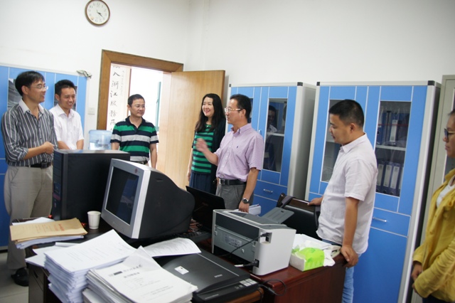国庆前夕,副校长冯军与院办人员一起来到生化轻工学院,指导化工专业认证材料的准备工作和实验室建设。