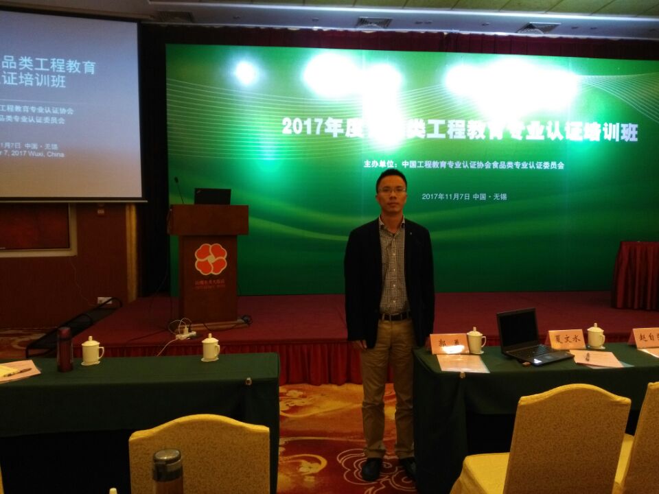 2017年11月7日,新葡的京集团8814食品工程系教师龚金炎博士参加由中国工程教育认证协会食品类专业认证委员会在无锡举办的2017年度食品类专业认证培训班。本次培训工作重点是围绕中国工程教育认证协会颁布的2016版工程教育专业认证通用标准和食品科学与工程专业补充标准,由中国工程教育认证协会秘书处赵自强处长和食品类专业认证委员会委员曾名湧教授、夏文水教授、刘静波教授等分别就《我国工程教育认证工作发展的新形势和要求》、《深刻理解认证标准,合理分解毕业要求》、《课程体系与培养目标达成》和《持续改进与评价机制》4个重要报告展开专题培训。