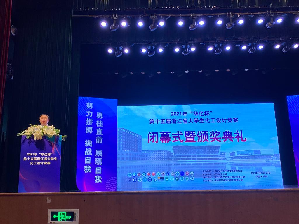 浙江省第十五届化工设计竞赛于7月28-29日在浙江树人大学举行,并于29日晚上圆满结束,新葡的京集团8814新葡的京集团8814院长黄俊、副院长朱瑞瑜应邀出席了闭幕式。会议宣布第十六届浙江省大学生化工设计竞赛将由我校承办,黄俊代表承办单位做了表态发言。