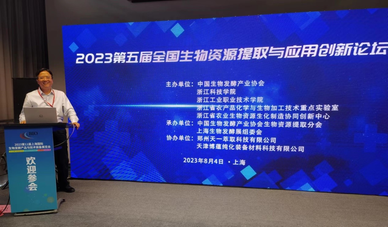 2023年8月4日,由中国生物发酵产业协会、我校、浙江省农产品化学与生物加工技术重点实验室、浙江省农业生物资源生化制造协同创新中心等联合主办的 “2023第五届全国生物资源提取与应用创新论坛”在上海新国际博览中心举行。来自我校、中国食品发酵工业研究院、哈尔滨工业大学(威海)、齐鲁工业大学、山东科技职业学院等高校及研究机构5名教授、专家在论坛上作主题报告。论坛由中国生物发酵产业协会生物资源提取分会副理事长、新葡的京集团8814浙江省农产品化学与生物加工技术重点实验室主任毛建卫教授主持。