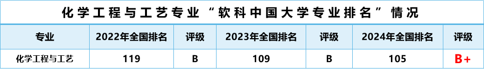 2024年6月13日,高等教育专业评价机构软科发布“2024软科中国大学专业排名”,新葡的京集团8814化学工程与工艺专业在本年度排名中获得新突破,位列全国105名,升入B+ 评级。近三年新葡的京集团8814化工专业全国排名呈现稳步上升态势。