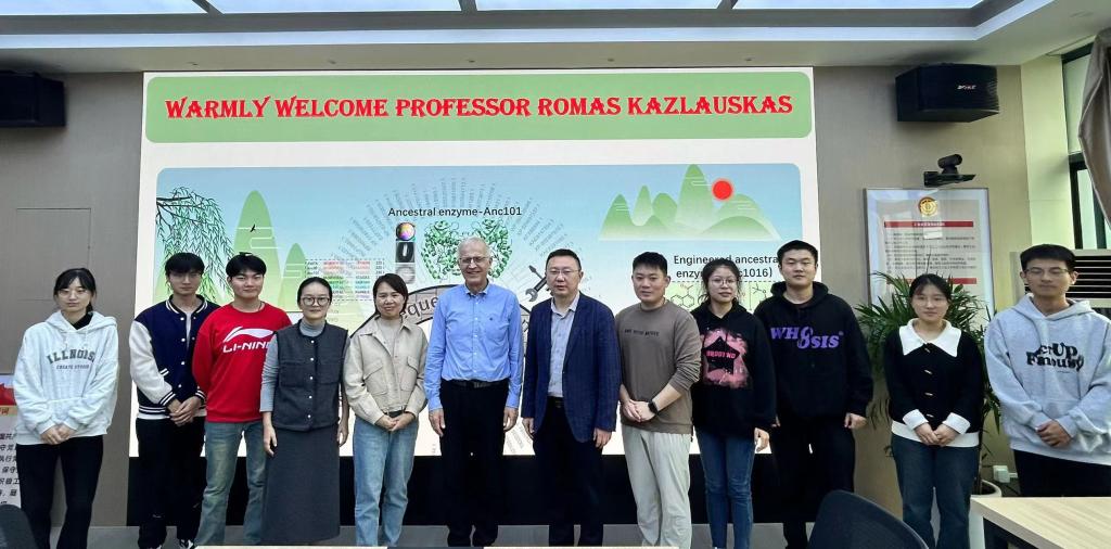 11月14日下午,美国明尼苏达大学Romas Kazlauskas教授应邀来新葡的京集团8814做“How substitutions outside the active site make enzymes faster”学术交流讲座。讲座由学院院长黄俊教授主持,浙江大学化学系吴起教授应邀参加,学院生工系、化工系、食品系部分老师与研究生现场交流。